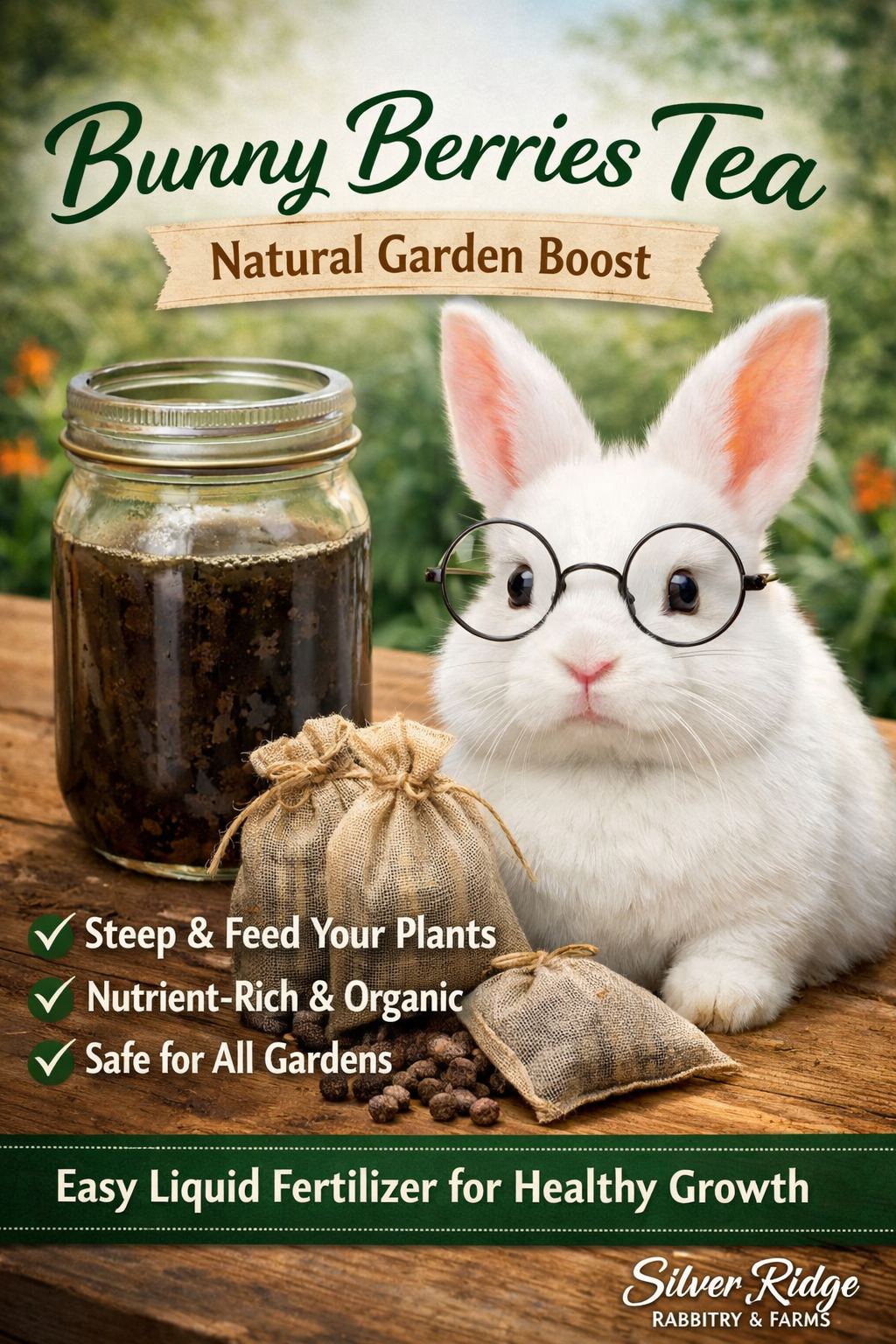 Made from rabbit manure—often called “bunny berries”—this gentle, nutrient-rich tea gives your plants a natural boost while supporting healthier soil over time.