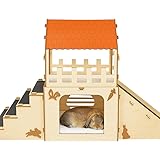 OtterPets Extra Large Bunny Hideout, Cozy Rabbit Castle with Fleece Mats, Wooden Rabbit Hideout, Bunny House Indoor Indoor, Chinchilla, Guinea Pig House (Pet Safe Wood Joints)