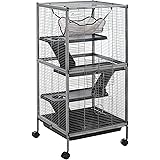 PawHut Metal Small Animal Cage, 4-Tiers Rolling Big Ferret Cage with Hammock, Removable Tray, for Chinchilla, Sugar Glider, Gray