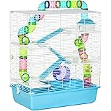 PawHut Extra Large 23″ Hamster Cage with Tubes and Tunnels, Portable Carry Handles, Rat House and Habitats Big 5-Tier Design, Mouse Cage Includes Exercise Wheel, Water Bottle, Food Dish, Light Blue