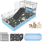MODESLAB Guinea Pig Cages with Tarp and Bedding Pee Pad Liner, 2-Story Large Guinea Pig Playpen C&C Loft Cage for 2 Rabbit Bunny Chinchilla Small Animal Habitat for Indoor