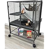 Deluxe Two Tiers Small Animal Critter Cage Tight 1/2-Inch Bar Spacing Water Bottle Food Bowl Feisty Ferret Hammock Chinchilla Rat Mice Squirrel Rabbit Sugar Glider Easy Clean Pull Out Grate Tray